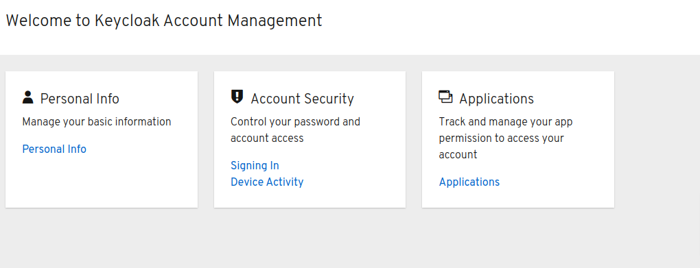 Realm settingspage. After that you need to click on the “Manage Account" link at the top and then it will show you theaccount consolepage as is shown below: