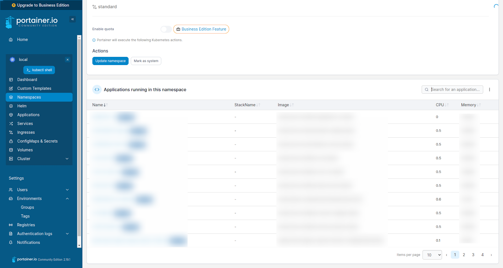 Click on one of the namespace and then you will find the applications running under that namespace.