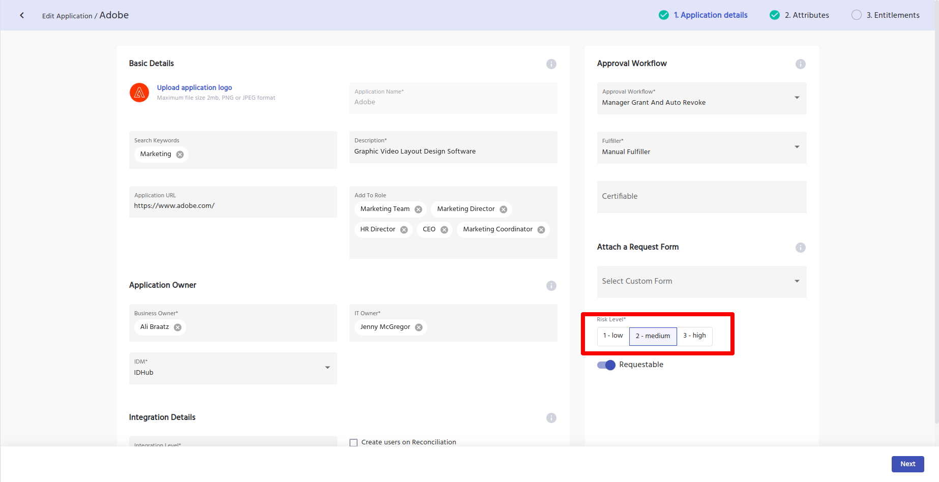 IDHub allows you to set your privileged applications and also set risk scores for the application. This would be necessary to categorize your applications in terms of the risk factor or the nature of the data or accounts that are handled by the application for your organisation.