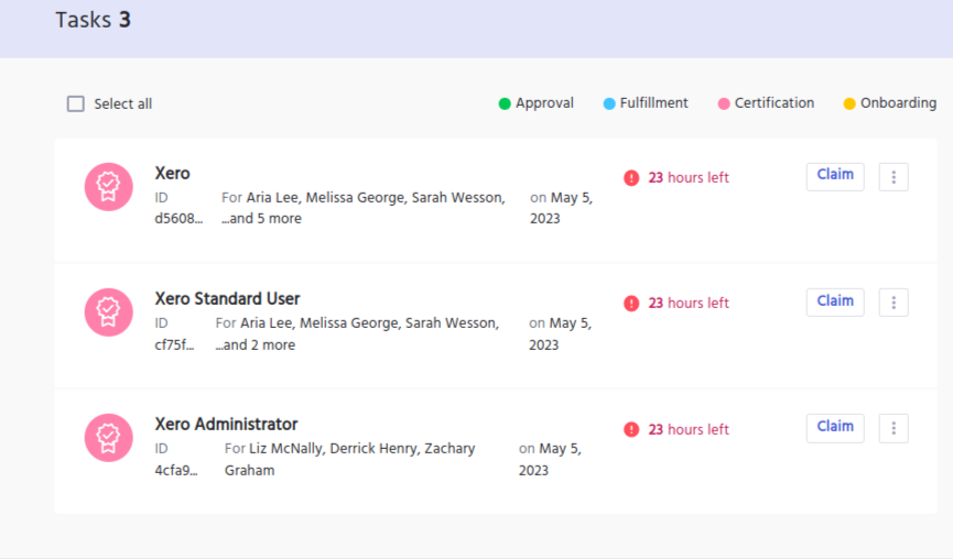 - If your certificate definition is resource type, then IDHub would be creating certification tasks for each resource that you are certifying. (See screenshot below)