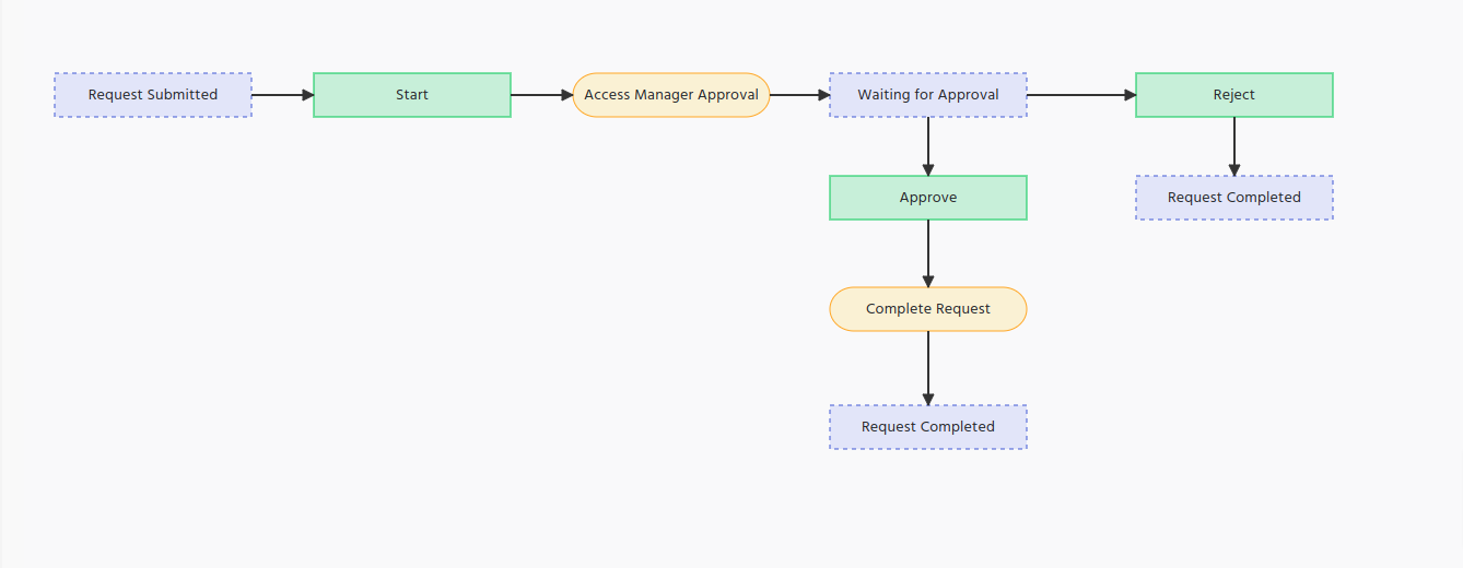 - Request completed state node to denote that the request has been completed once the access manager has approved the request.