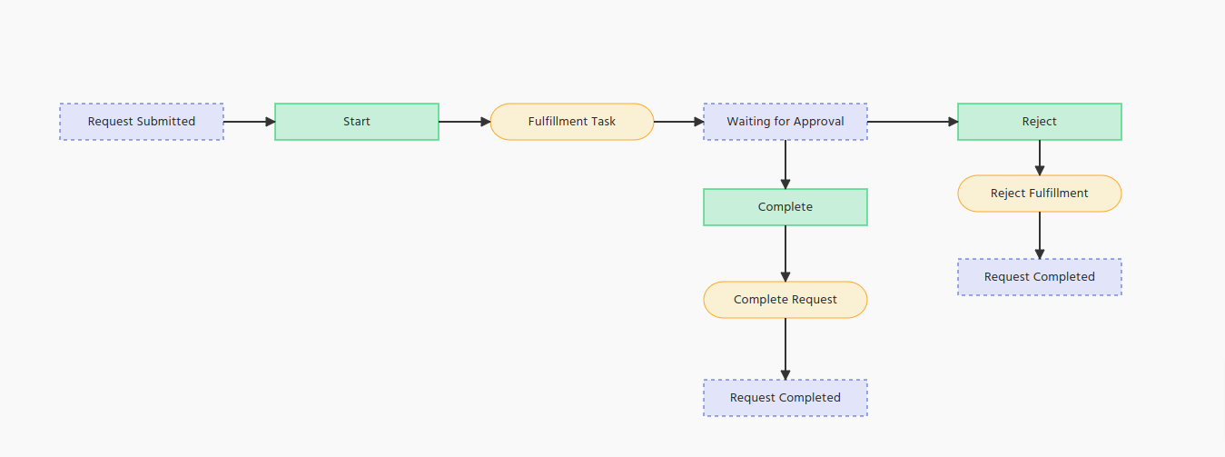 - Now the request is waiting for the Fulfilller to take action on the task generated. Waiting For approval state node is put here to denote the state of the request.